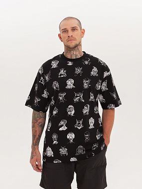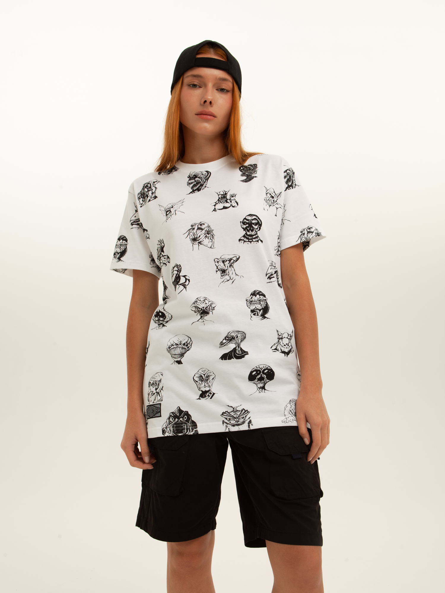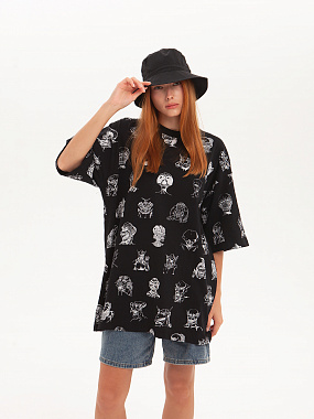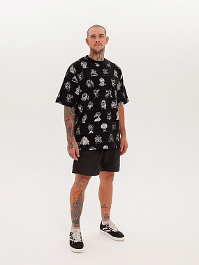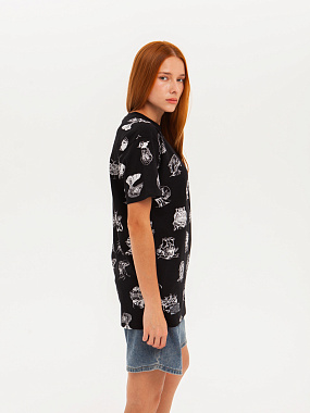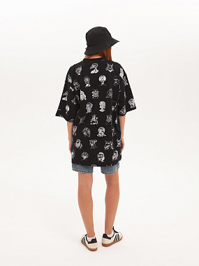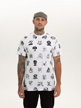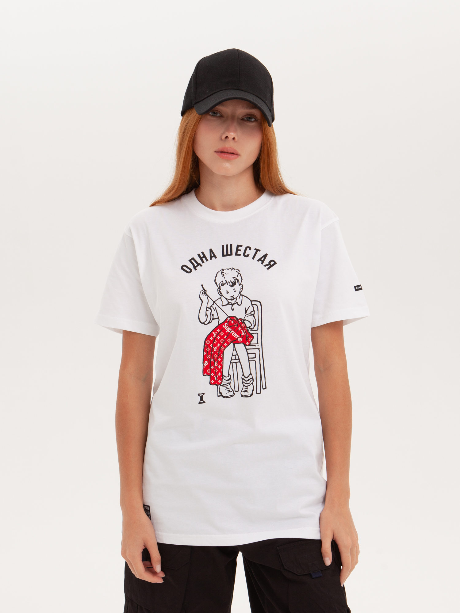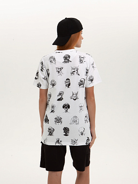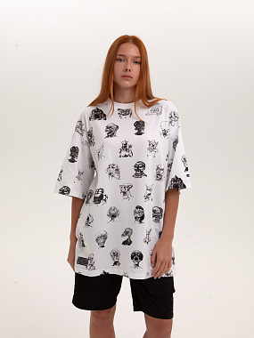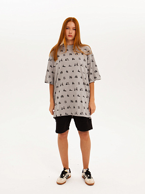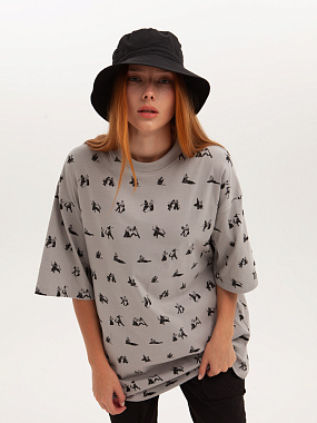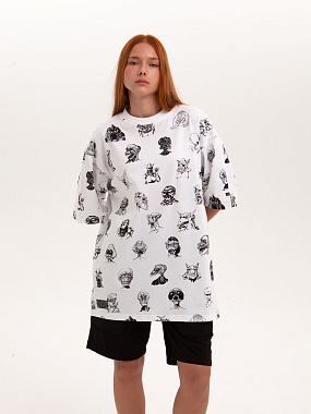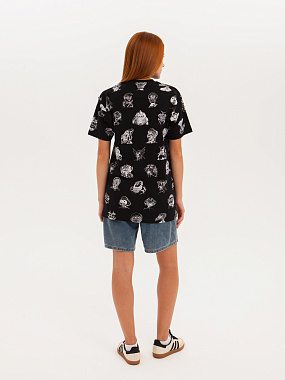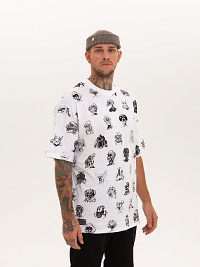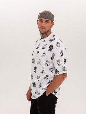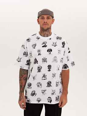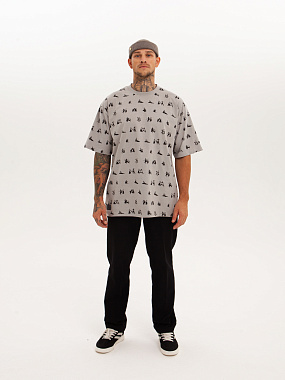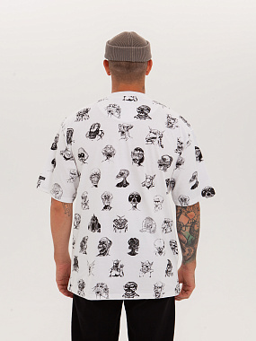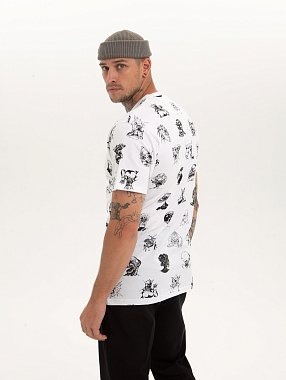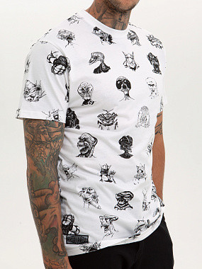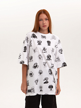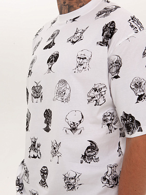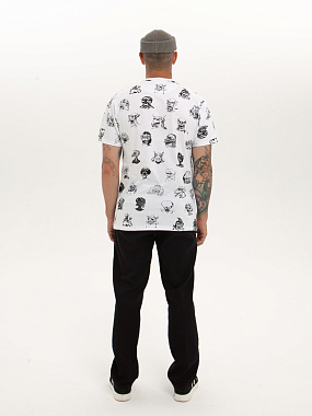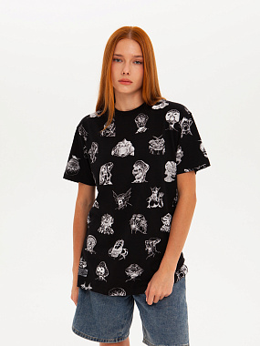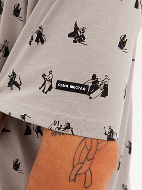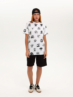 Футболка от российского бренда 1/6, выполненная из легкой хлопковой ткани. Традиционный силуэт, прямой крой и круглый ворот. Футболка представлена в однотонной расцветке, украшенной принтом по всей поверхности и нашивкой на рукаве с логотипом бренда. - Хлопковая ткань - Традиционный силуэт - Прямой крой - Круглый ворот - Принт по всей поверхности - Нашивка с логотипом бренда