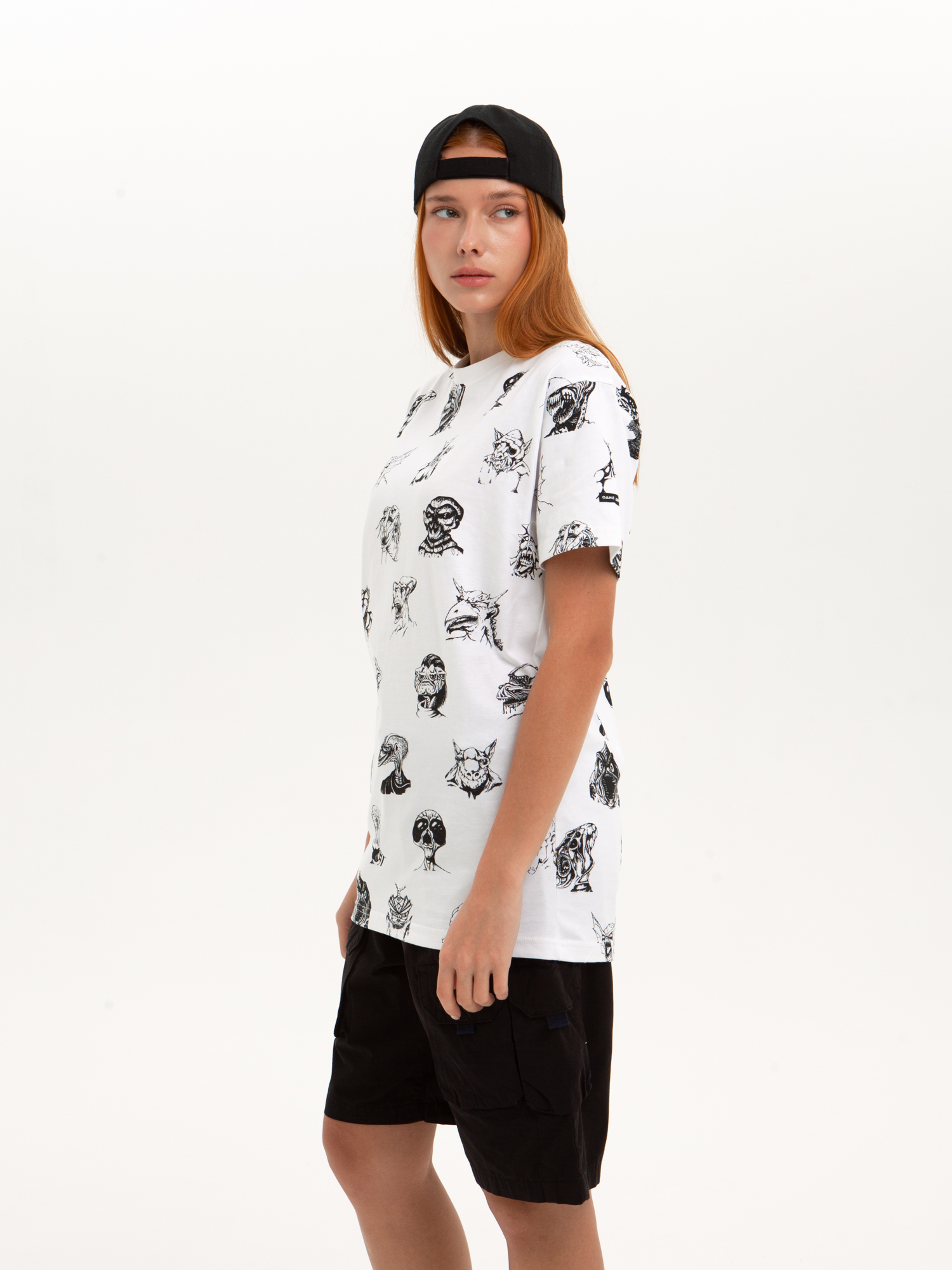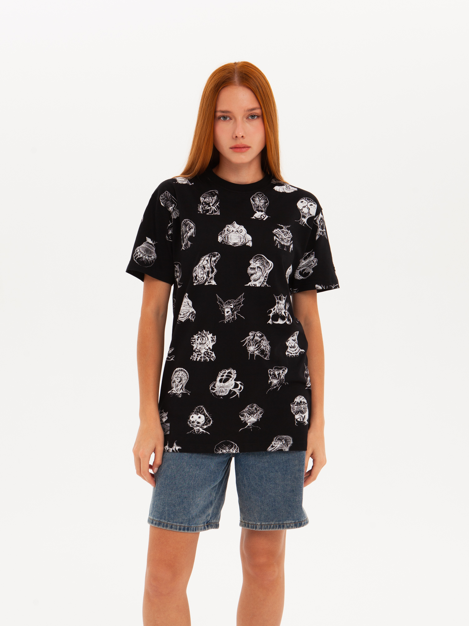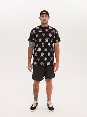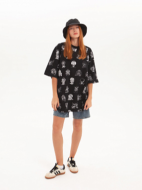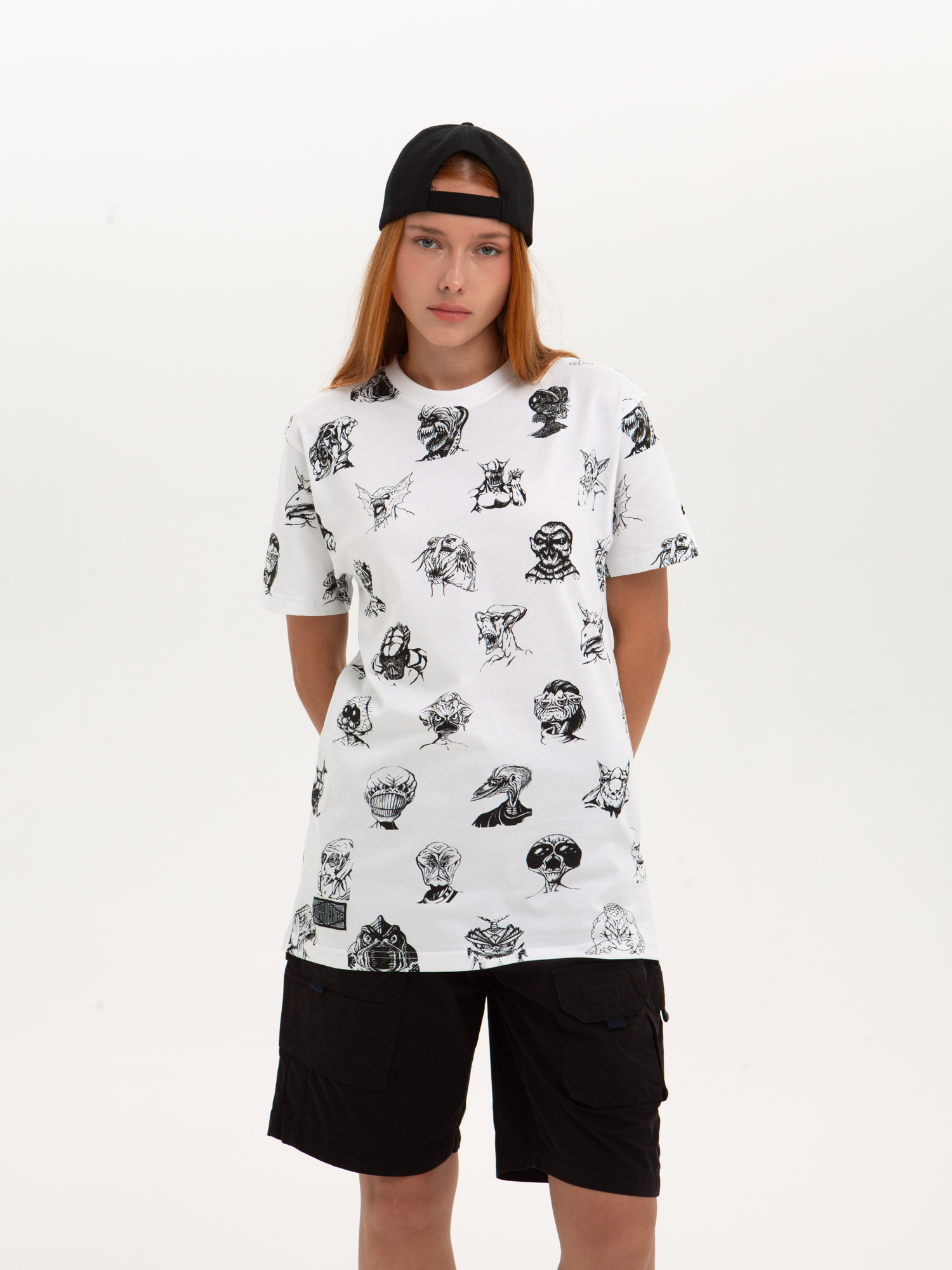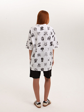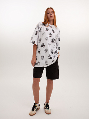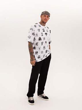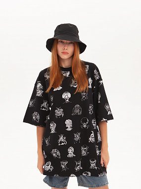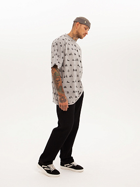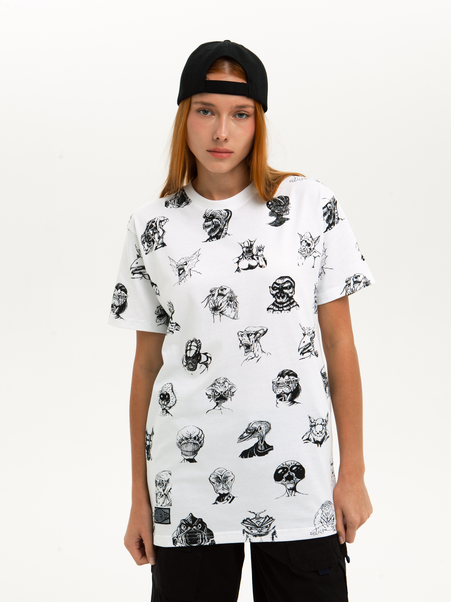 Футболка от российского бренда 1/6, выполненная из легкой хлопковой ткани. Традиционный силуэт, прямой крой и круглый ворот. Футболка представлена в однотонной расцветке, украшенной принтом по всей поверхности и нашивкой на рукаве с логотипом бренда. - Хлопковая ткань - Традиционный силуэт - Прямой крой - Круглый ворот - Принт по всей поверхности - Нашивка с логотипом бренда