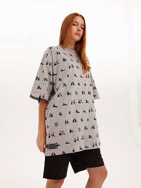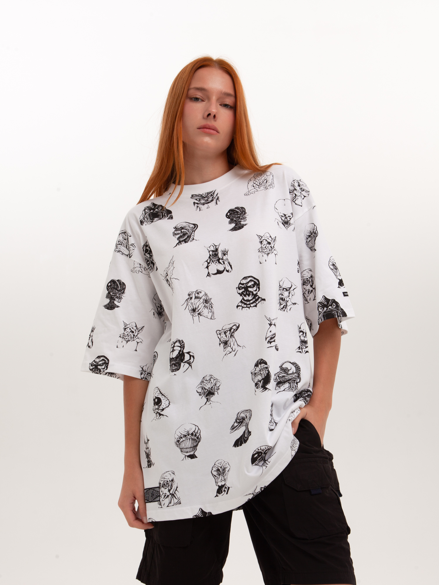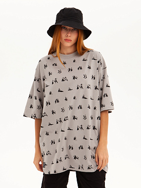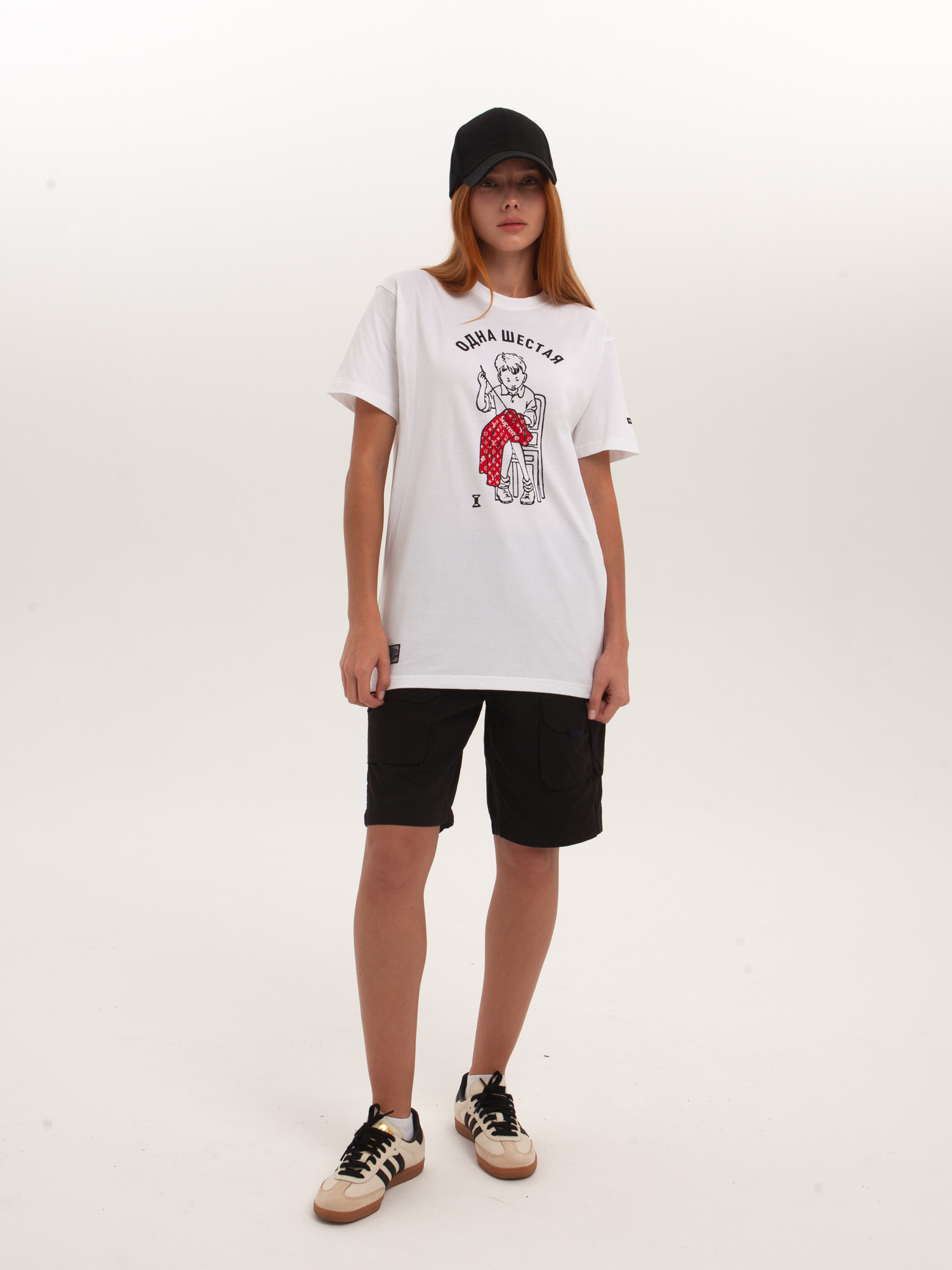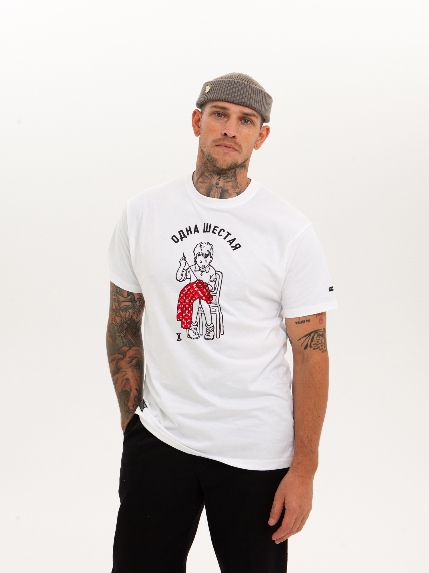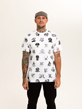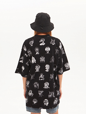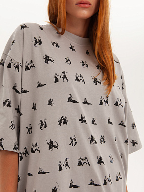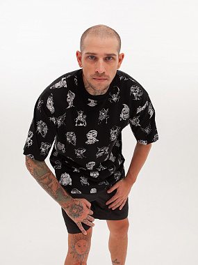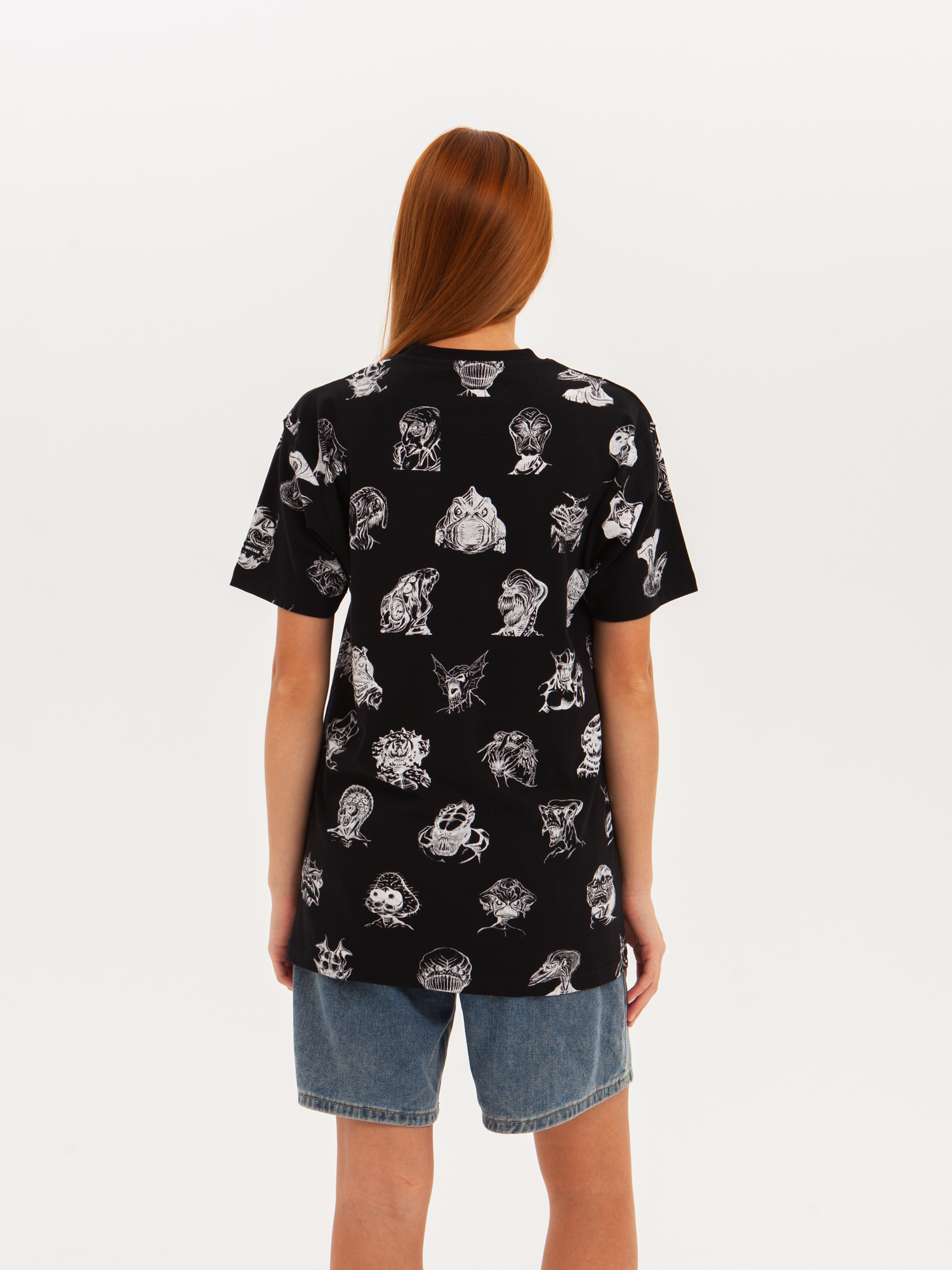 Футболка от российского бренда 1/6, выполненная из легкой хлопковой ткани. Традиционный силуэт, прямой крой и круглый ворот. Футболка представлена в однотонной расцветке, украшенной принтом по всей поверхности и нашивкой на рукаве с логотипом бренда. - Хлопковая ткань - Традиционный силуэт - Прямой крой - Круглый ворот - Принт по всей поверхности - Нашивка с логотипом бренда