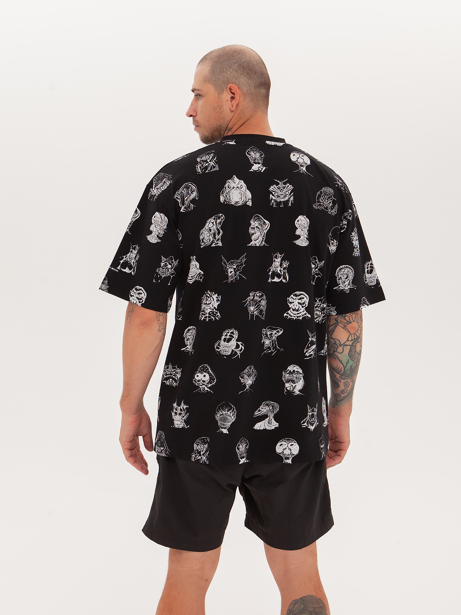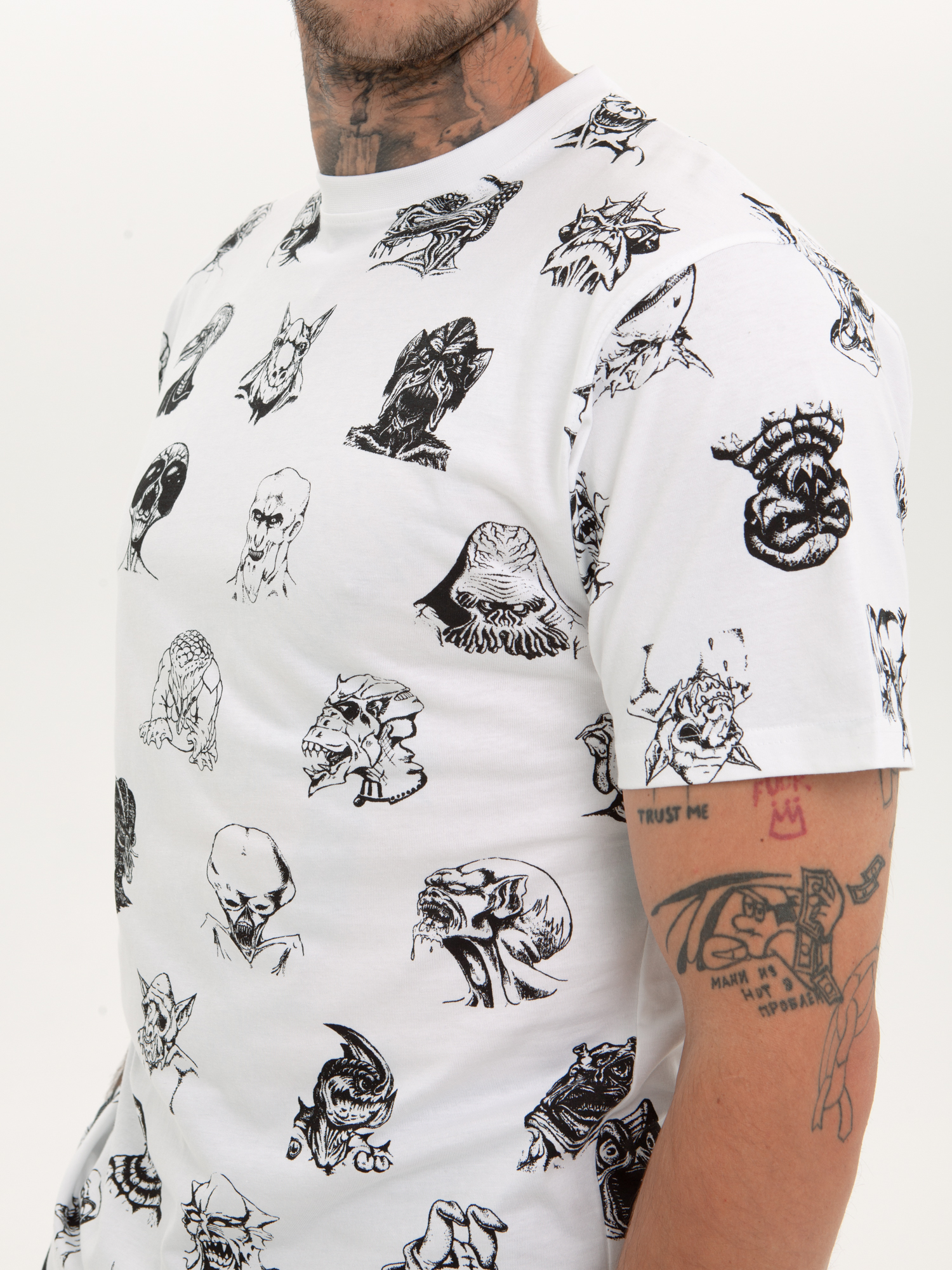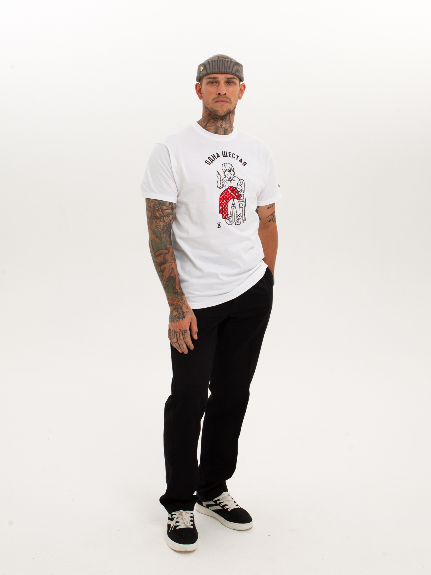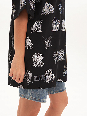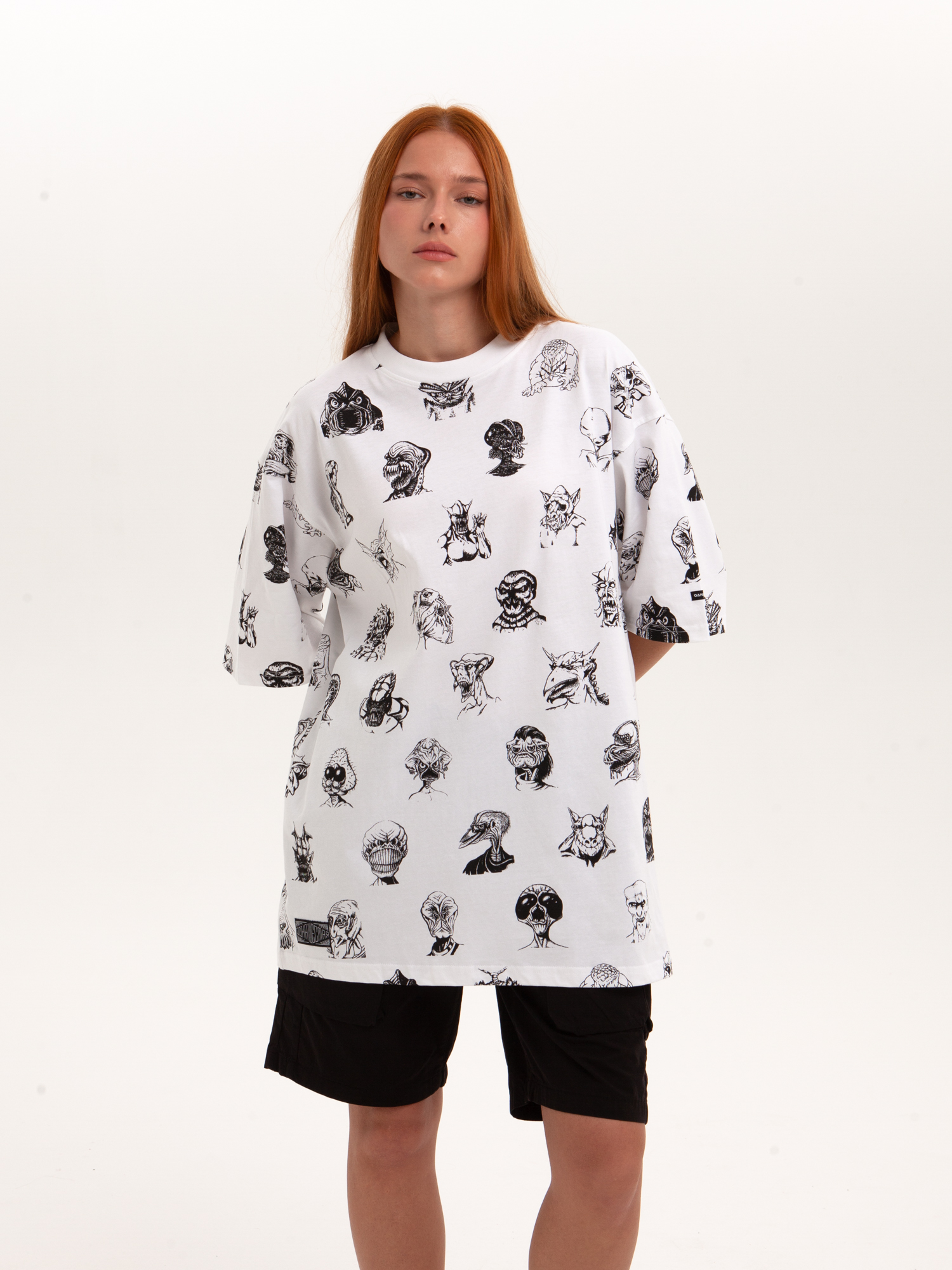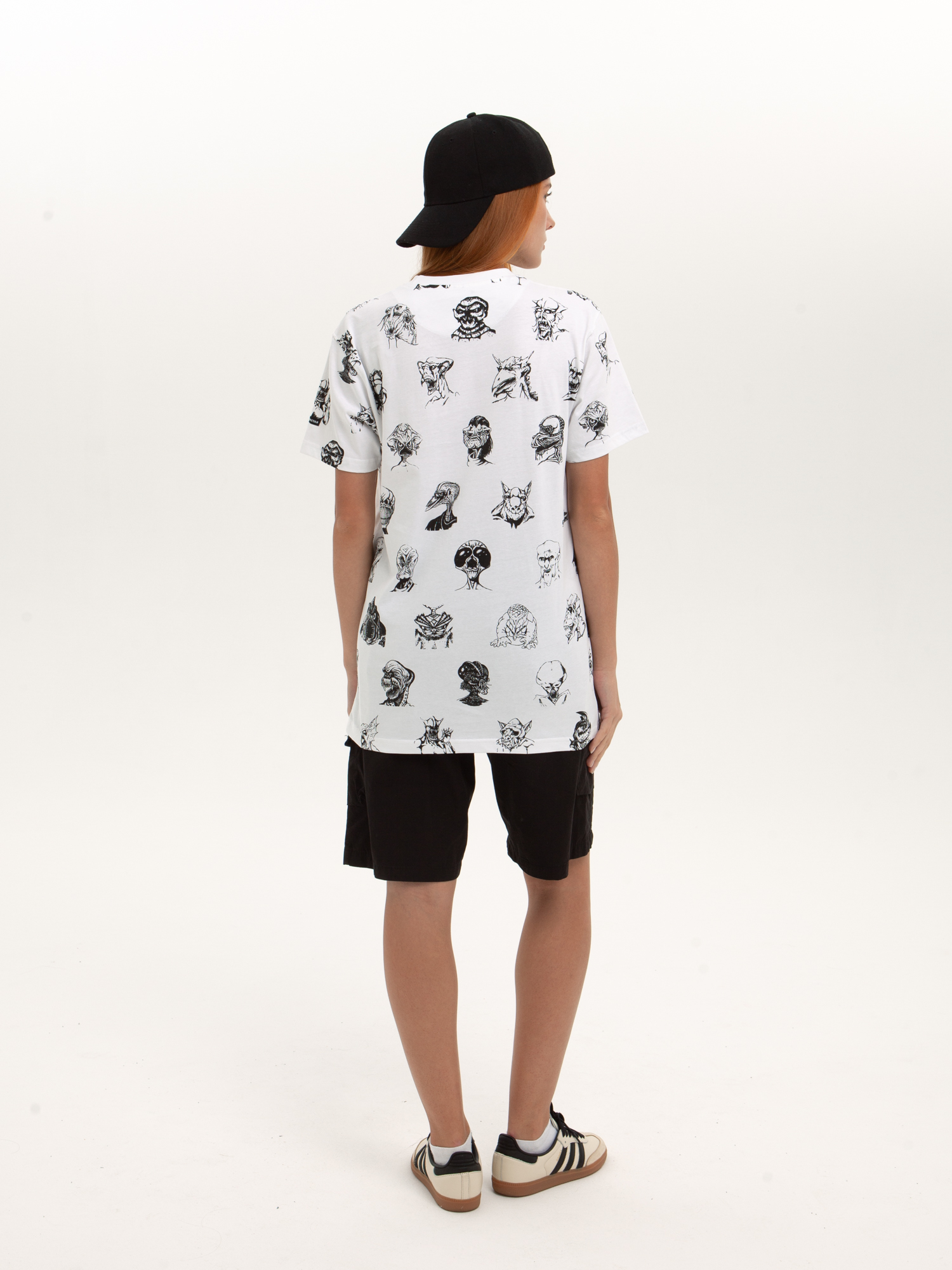 Футболка от российского бренда 1/6, выполненная из легкой хлопковой ткани. Традиционный силуэт, прямой крой и круглый ворот. Футболка представлена в однотонной расцветке, украшенной принтом по всей поверхности и нашивкой на рукаве с логотипом бренда. - Хлопковая ткань - Традиционный силуэт - Прямой крой - Круглый ворот - Принт по всей поверхности - Нашивка с логотипом бренда