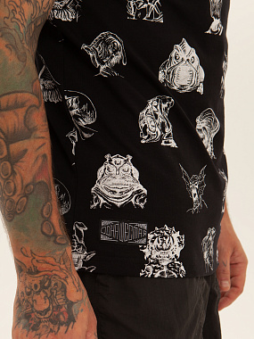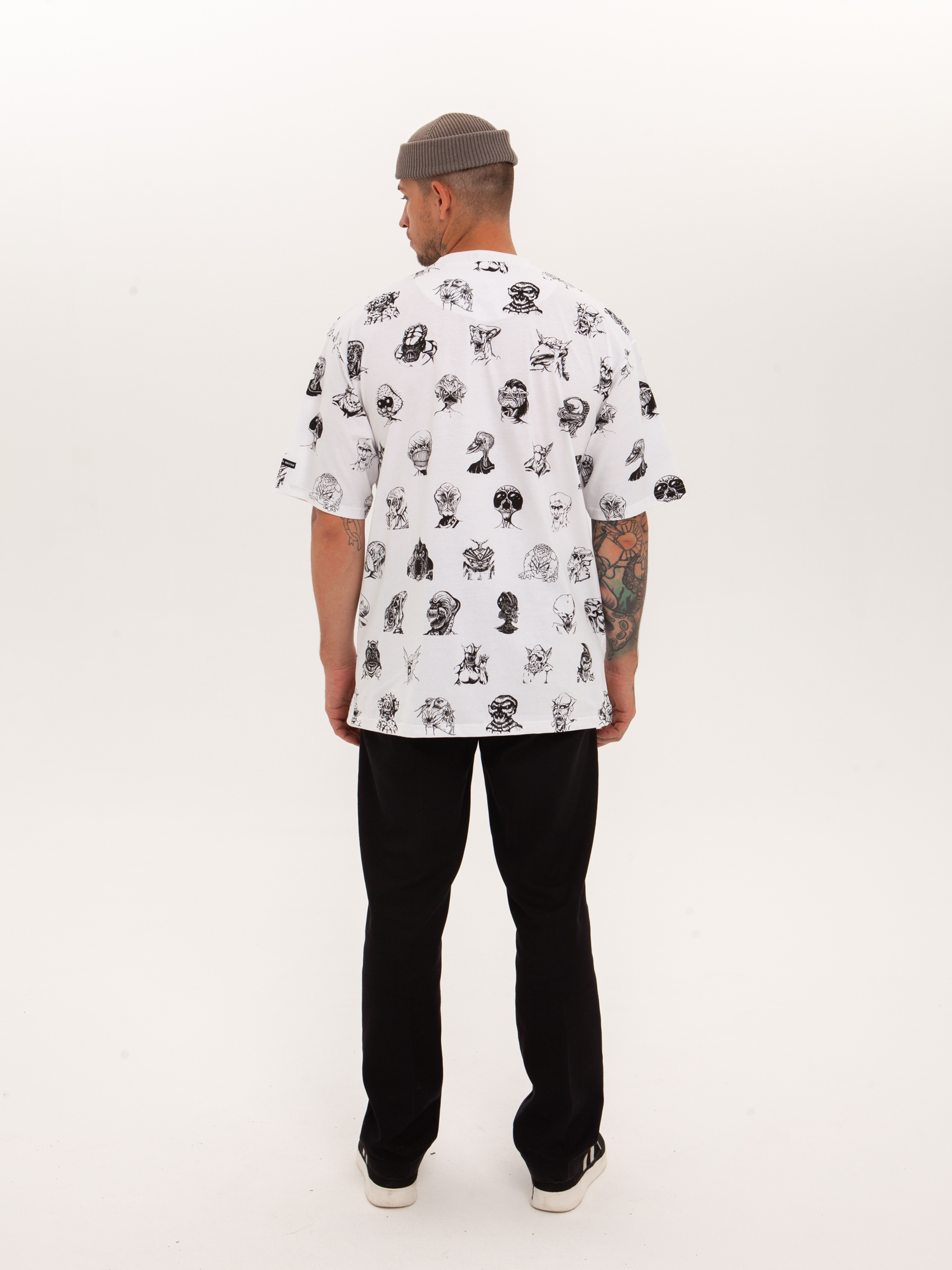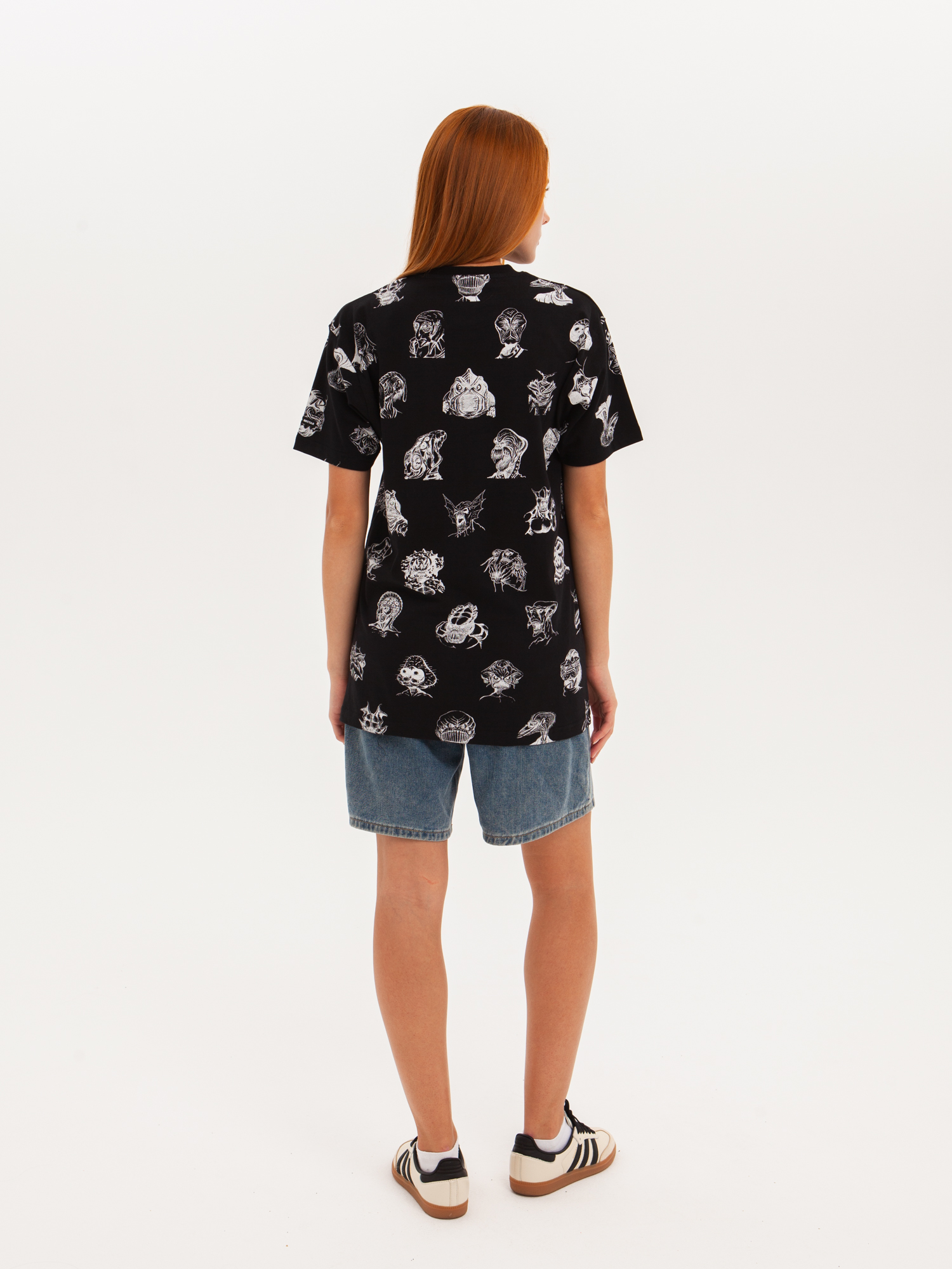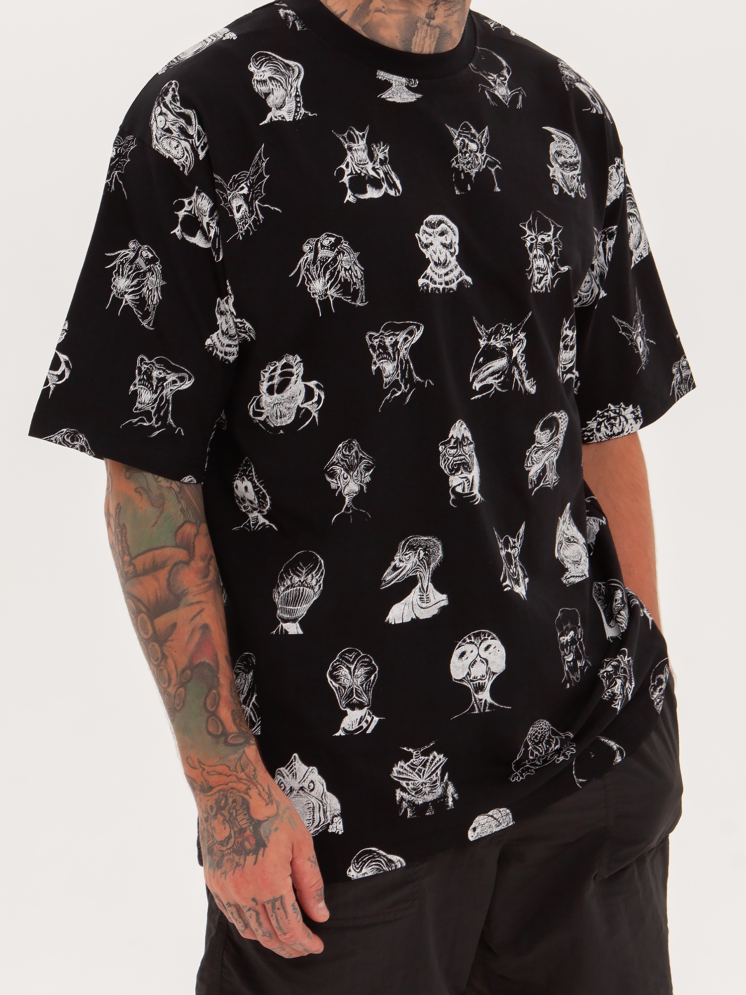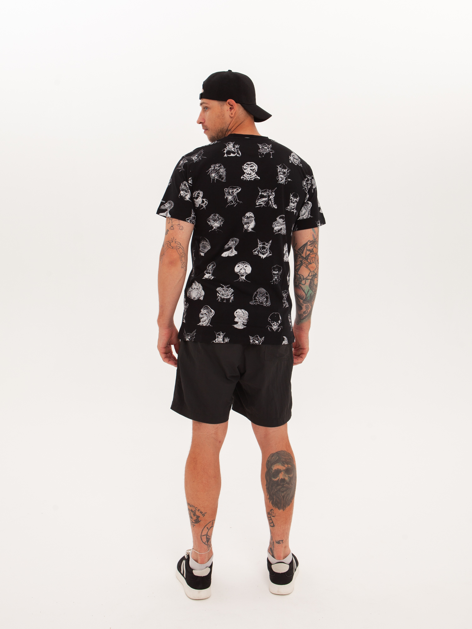 Футболка от российского бренда 1/6, выполненная из легкой хлопковой ткани. Традиционный силуэт, прямой крой и круглый ворот. Футболка представлена в однотонной расцветке, украшенной принтом по всей поверхности и нашивкой на рукаве с логотипом бренда. - Хлопковая ткань - Традиционный силуэт - Прямой крой - Круглый ворот - Принт по всей поверхности - Нашивка с логотипом бренда