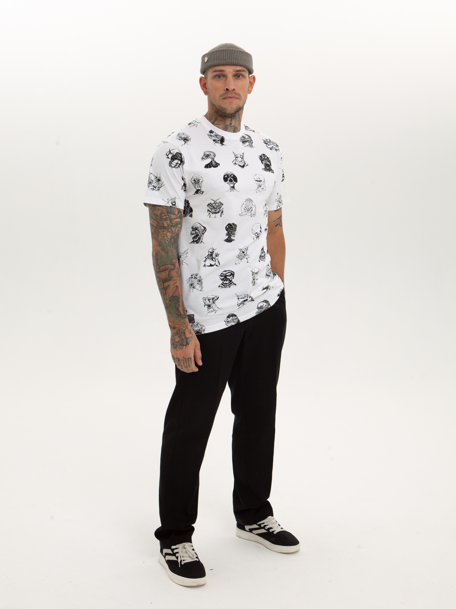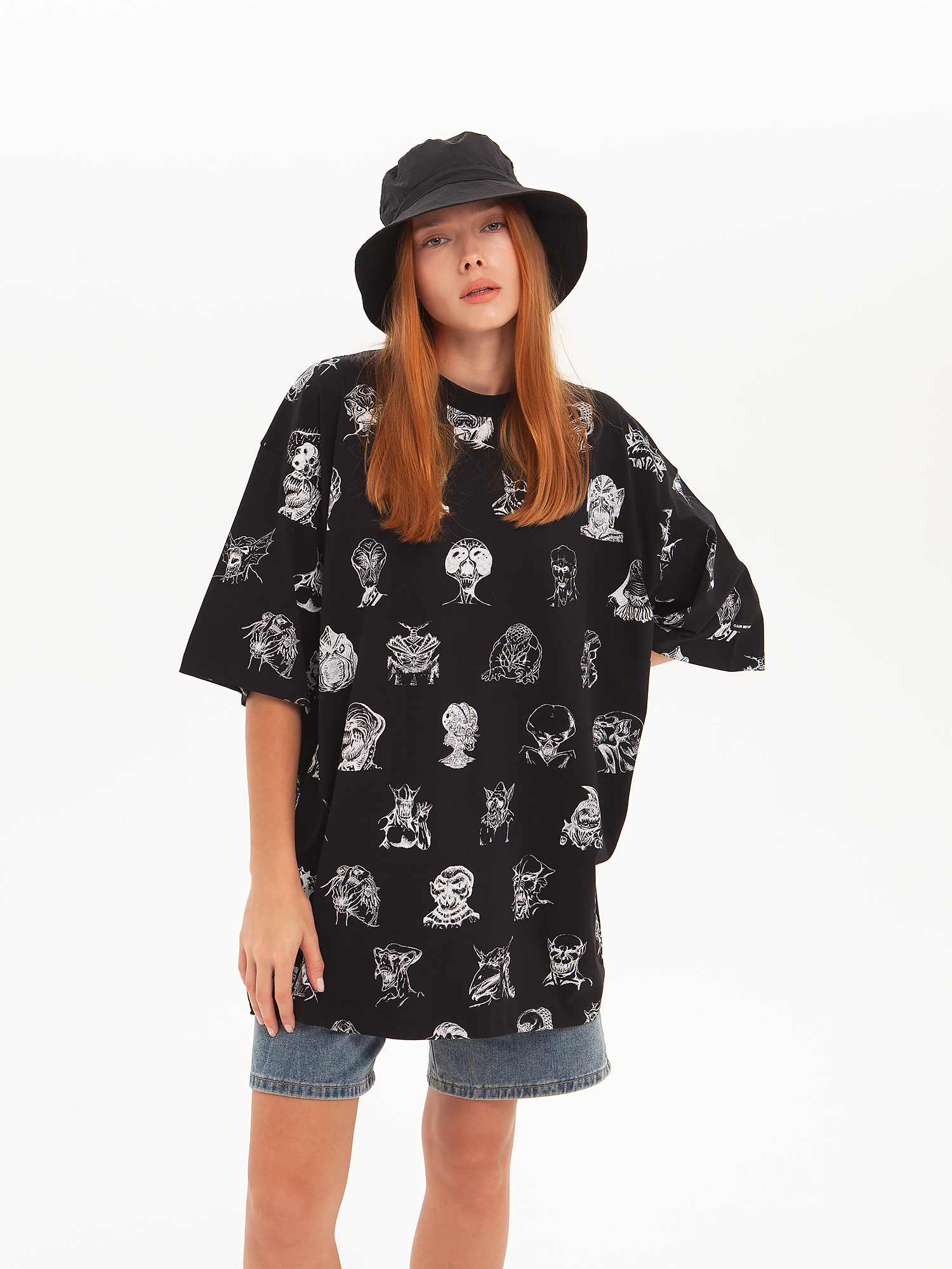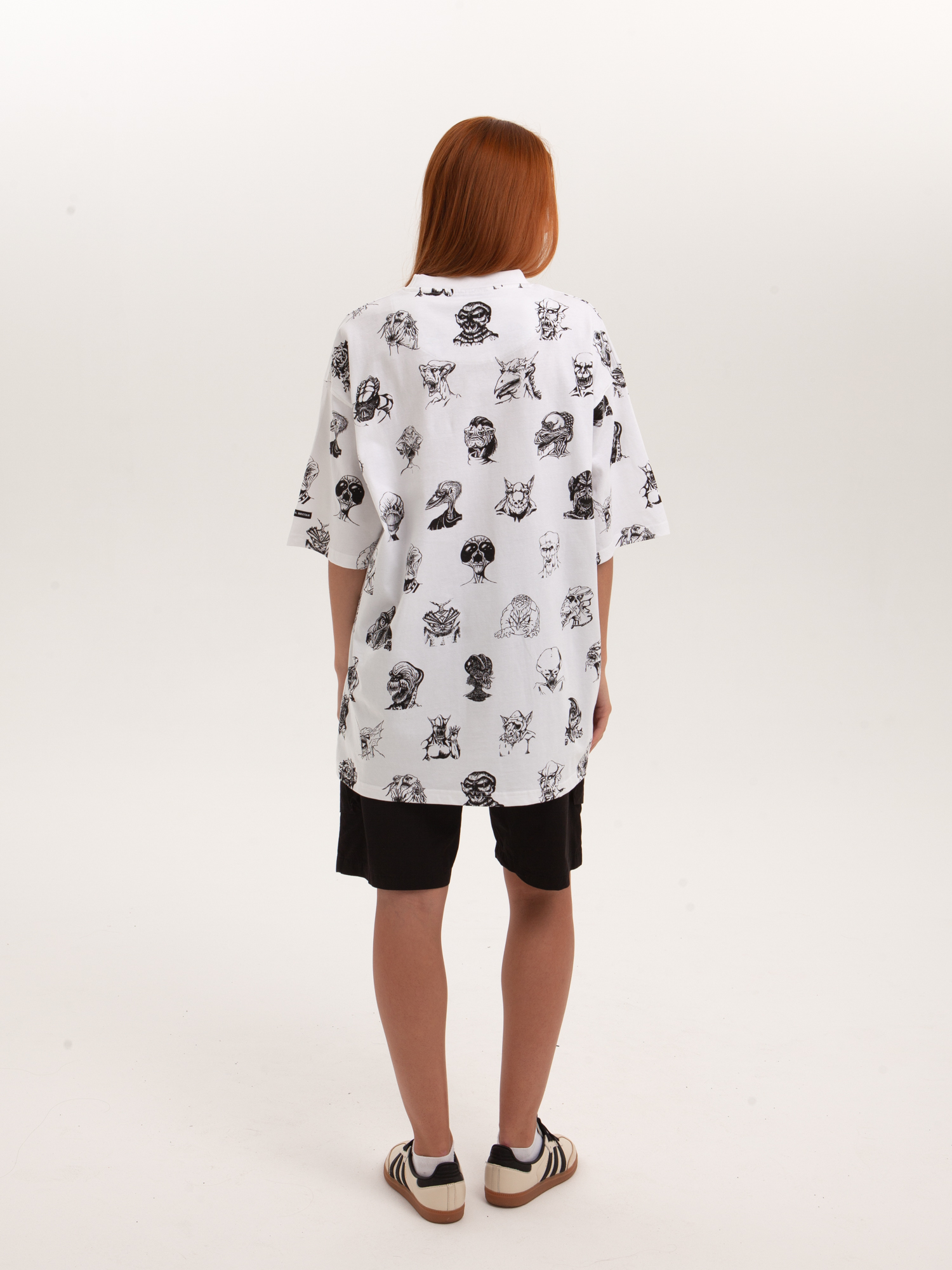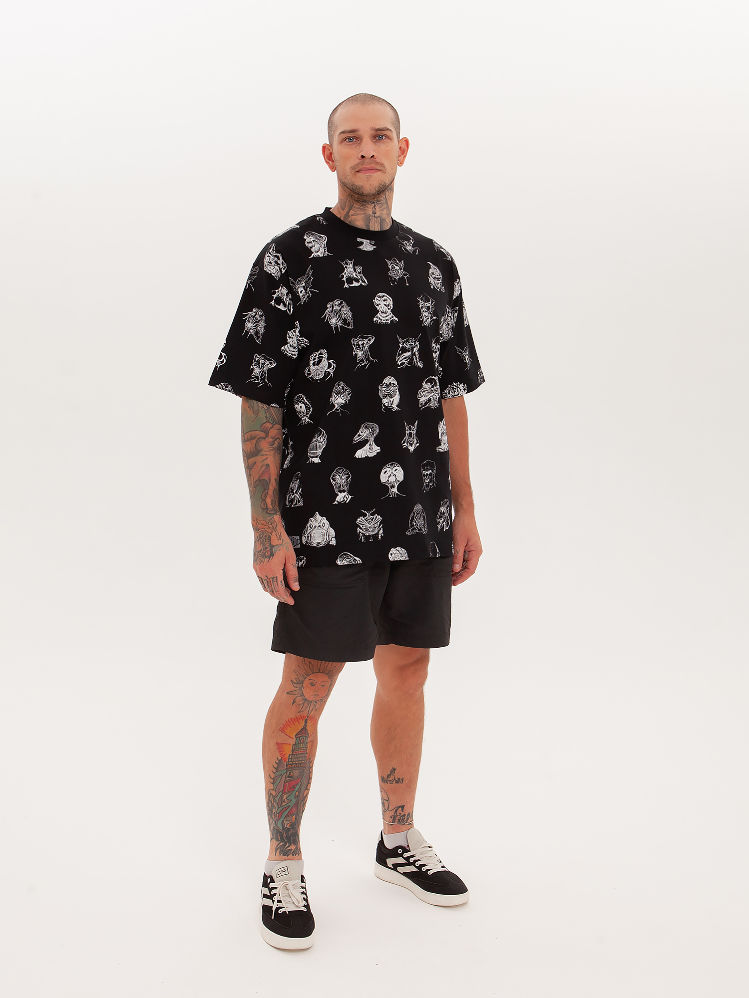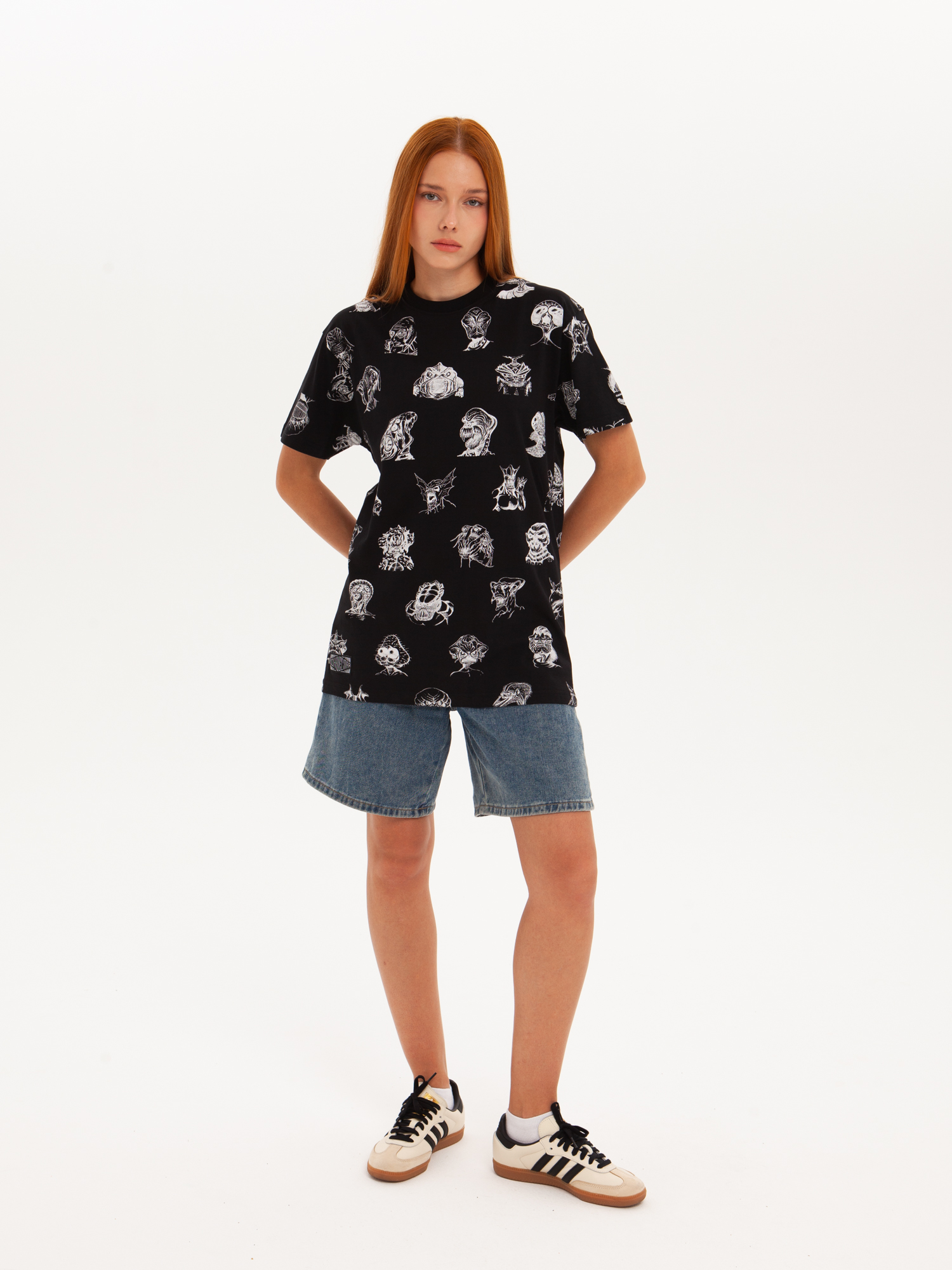 Футболка от российского бренда 1/6, выполненная из легкой хлопковой ткани. Традиционный силуэт, прямой крой и круглый ворот. Футболка представлена в однотонной расцветке, украшенной принтом по всей поверхности и нашивкой на рукаве с логотипом бренда. - Хлопковая ткань - Традиционный силуэт - Прямой крой - Круглый ворот - Принт по всей поверхности - Нашивка с логотипом бренда