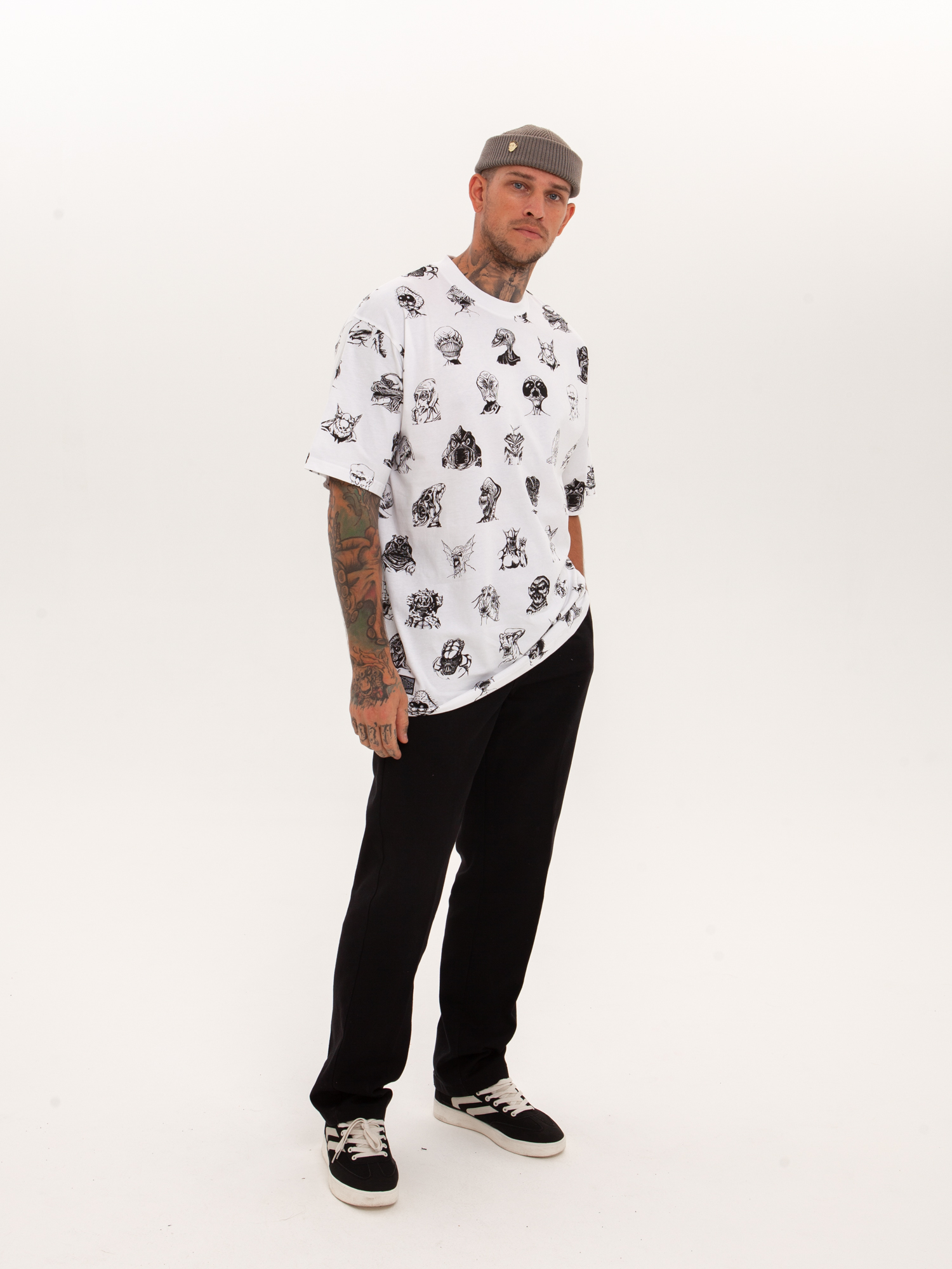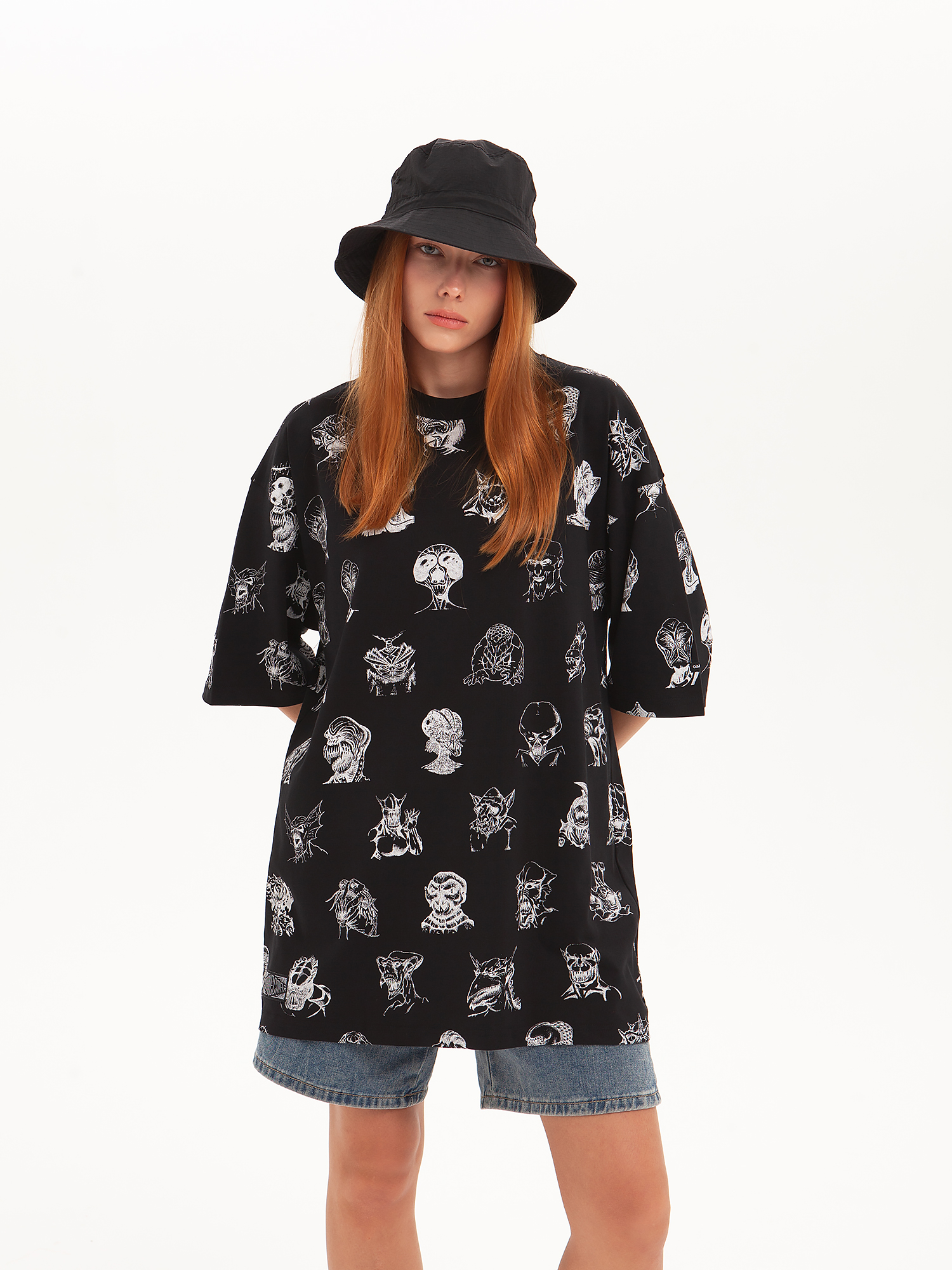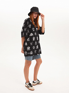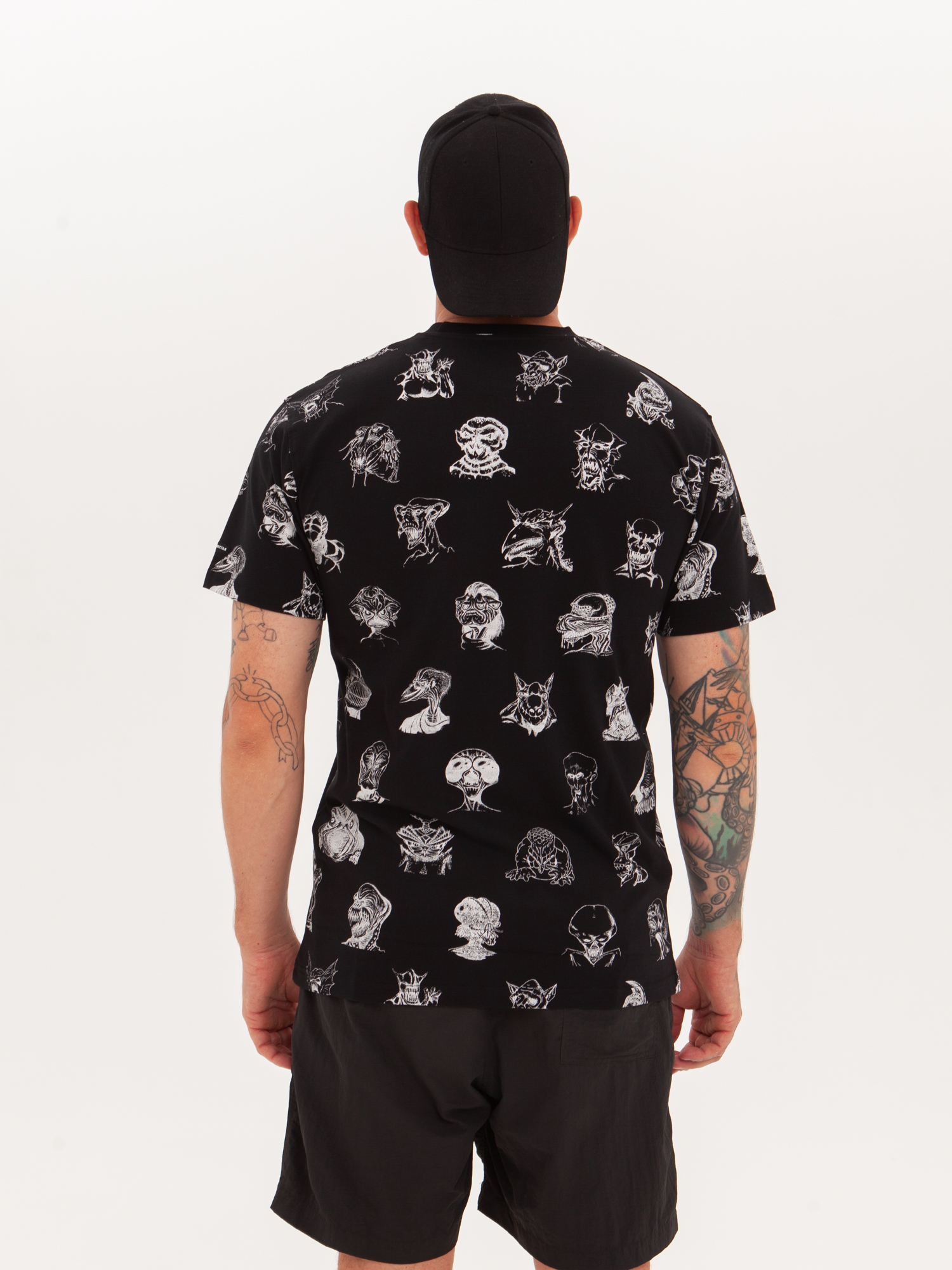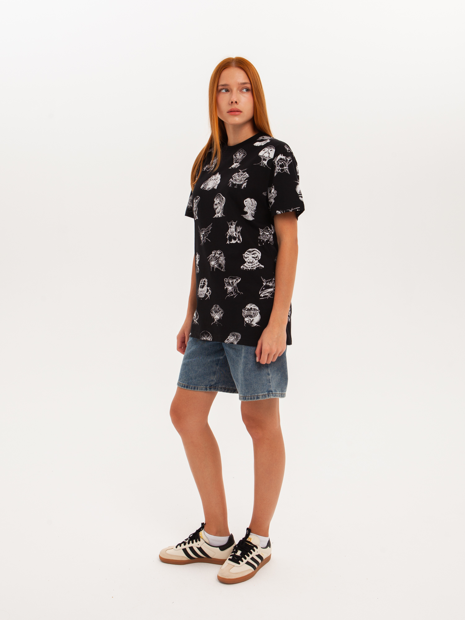 Футболка от российского бренда 1/6, выполненная из легкой хлопковой ткани. Традиционный силуэт, прямой крой и круглый ворот. Футболка представлена в однотонной расцветке, украшенной принтом по всей поверхности и нашивкой на рукаве с логотипом бренда. - Хлопковая ткань - Традиционный силуэт - Прямой крой - Круглый ворот - Принт по всей поверхности - Нашивка с логотипом бренда