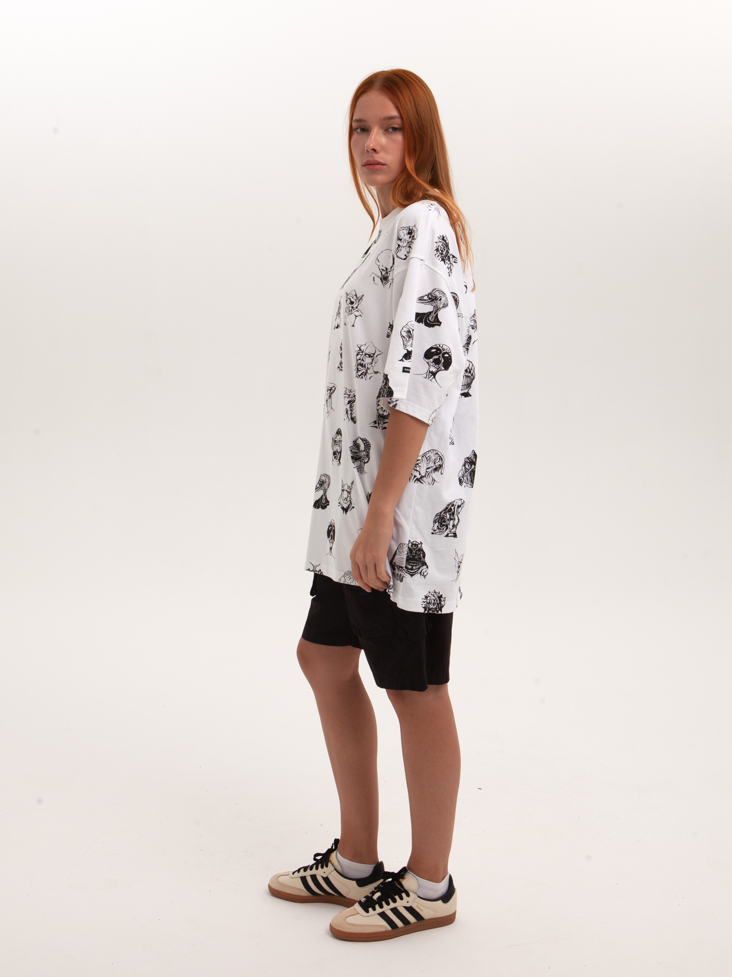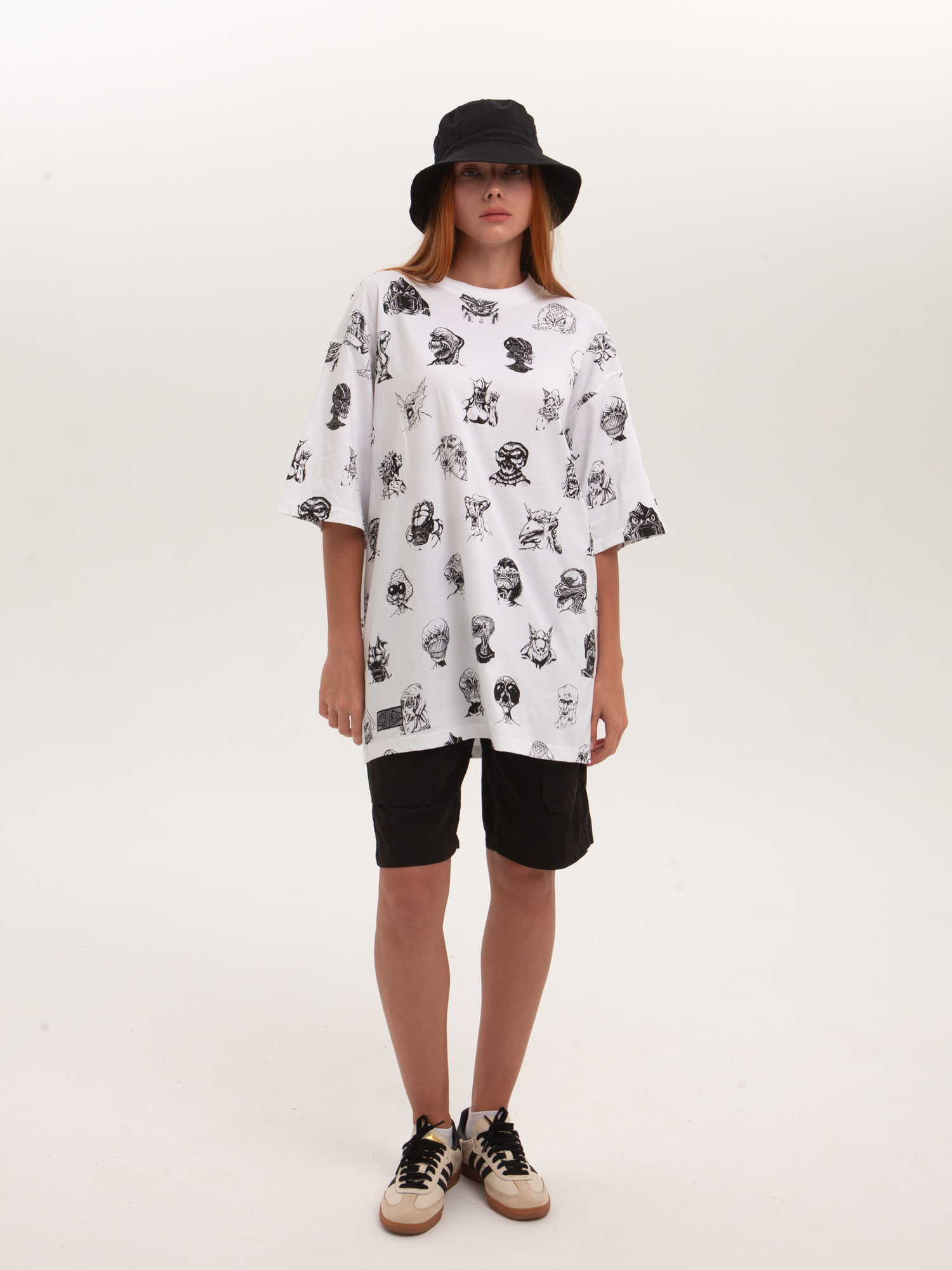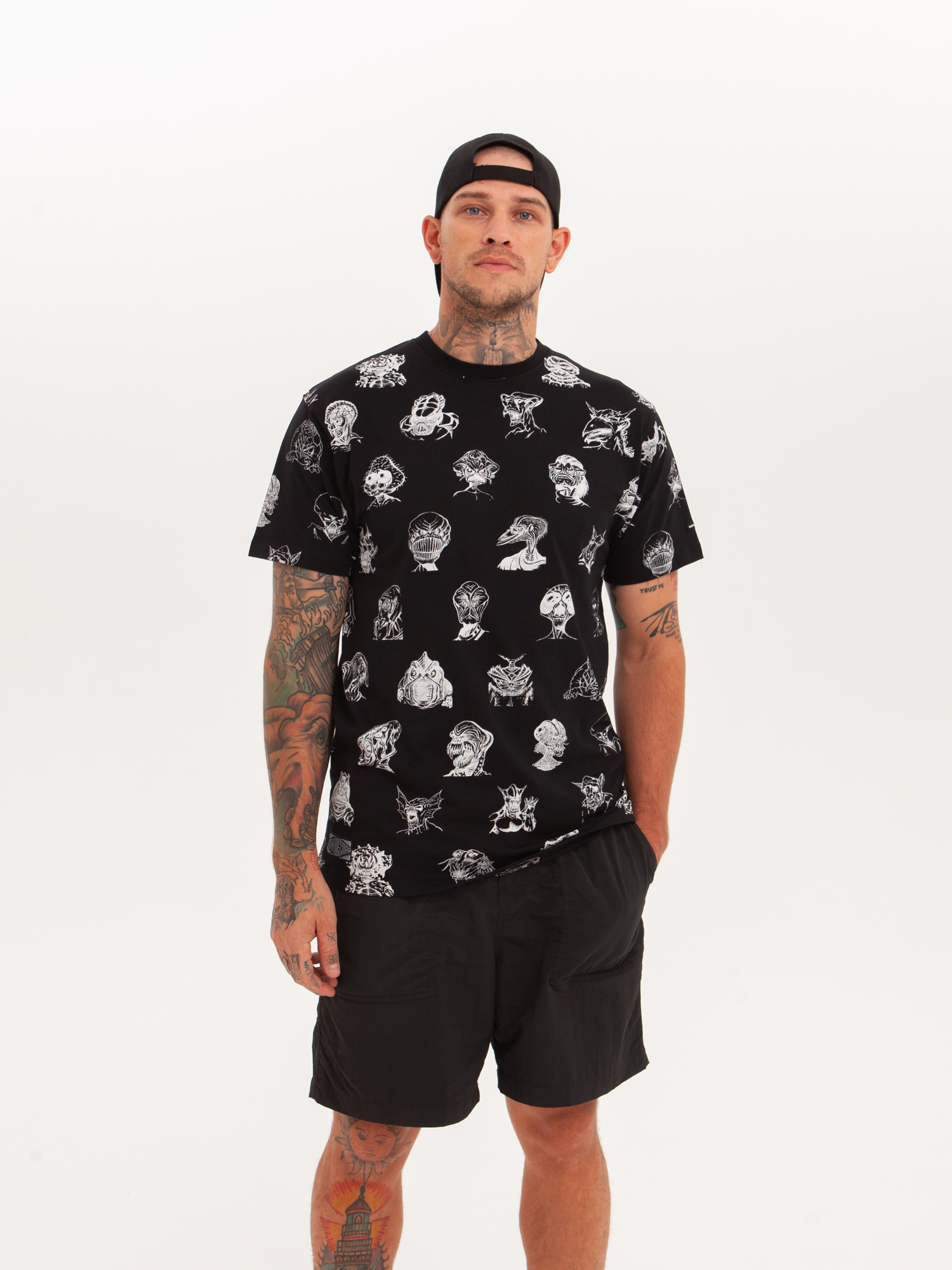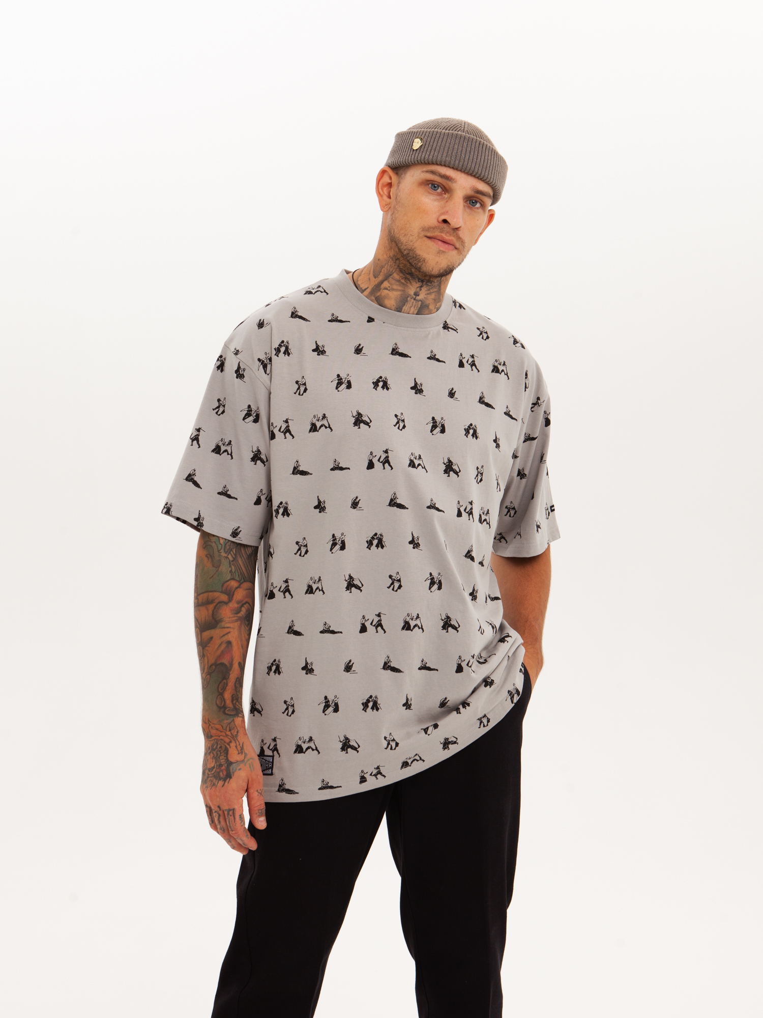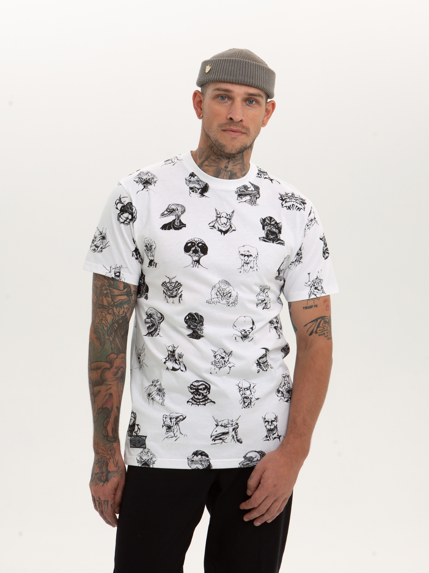 Футболка от российского бренда 1/6, выполненная из легкой хлопковой ткани. Традиционный силуэт, прямой крой и круглый ворот. Футболка представлена в однотонной расцветке, украшенной принтом по всей поверхности и нашивкой на рукаве с логотипом бренда. - Хлопковая ткань - Традиционный силуэт - Прямой крой - Круглый ворот - Принт по всей поверхности - Нашивка с логотипом бренда