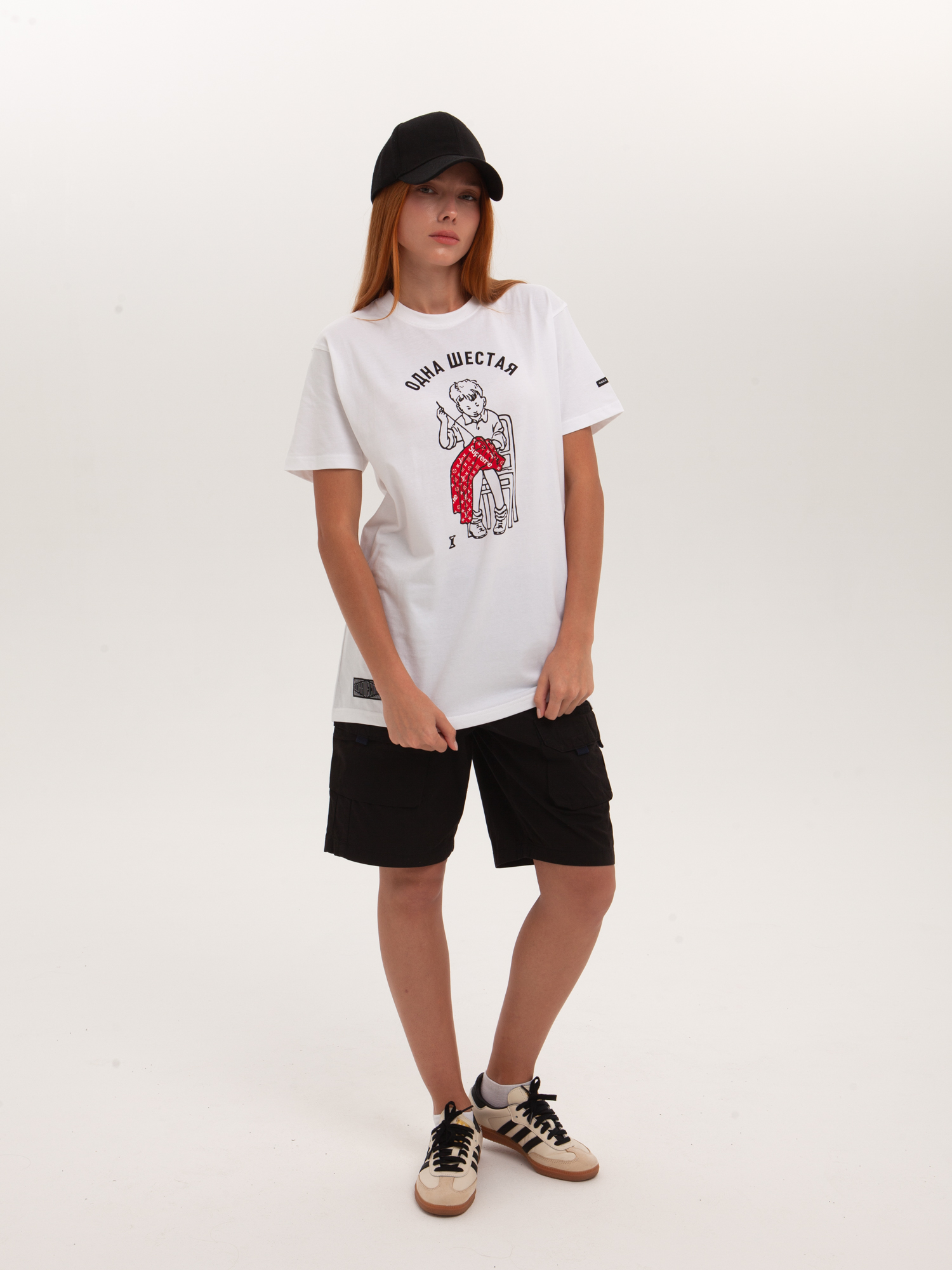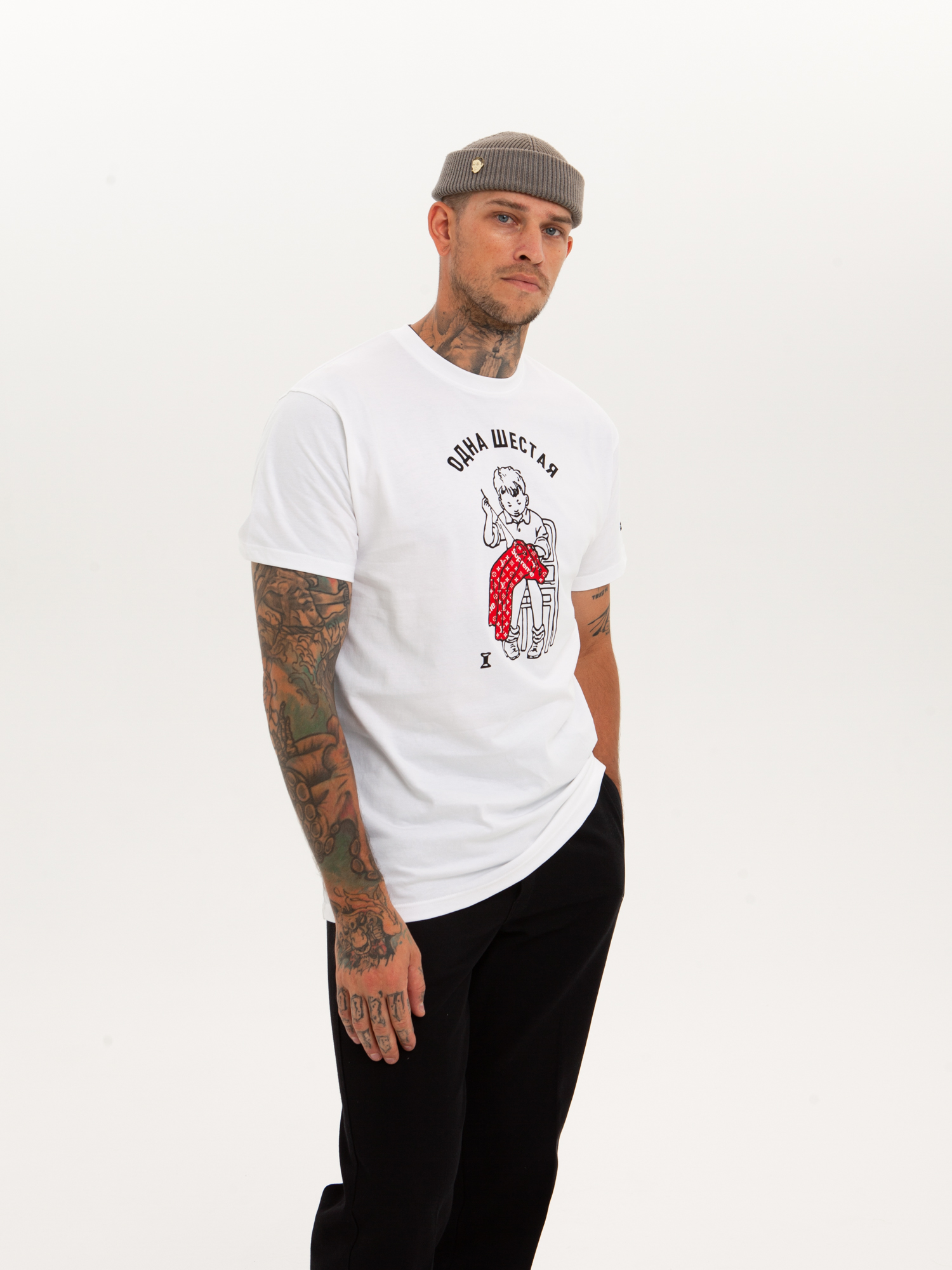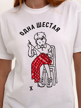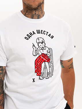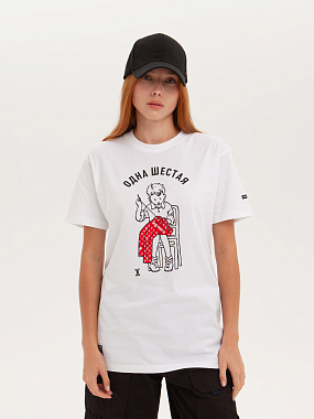 Футболка от российского бренда 1/6, выполненная из легкой хлопковой ткани. Традиционный силуэт, прямой крой и круглый ворот. Футболка представлена в однотонной расцветке, украшенной принтом на груди и нашивкой на рукаве с логотипом бренда. - Хлопковая ткань - Традиционный силуэт - Прямой крой - Круглый ворот - Принт на груди - Нашивка с логотипом бренда