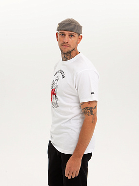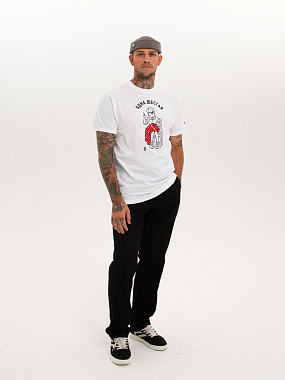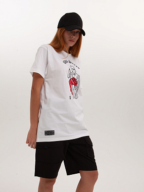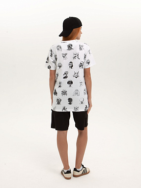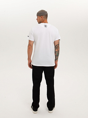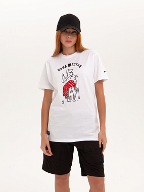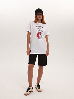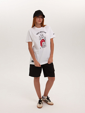 Модель выполнена из хлопка повышенной плотности. Не просвечивает. Трикотажная футболка прямого кроя и круглой горловиной. Мягкий хлопковый трикотаж комфортен в носке при любых условиях. - Натуральный хлопок - Прямой крой - Круглый ворот - Принт спереди